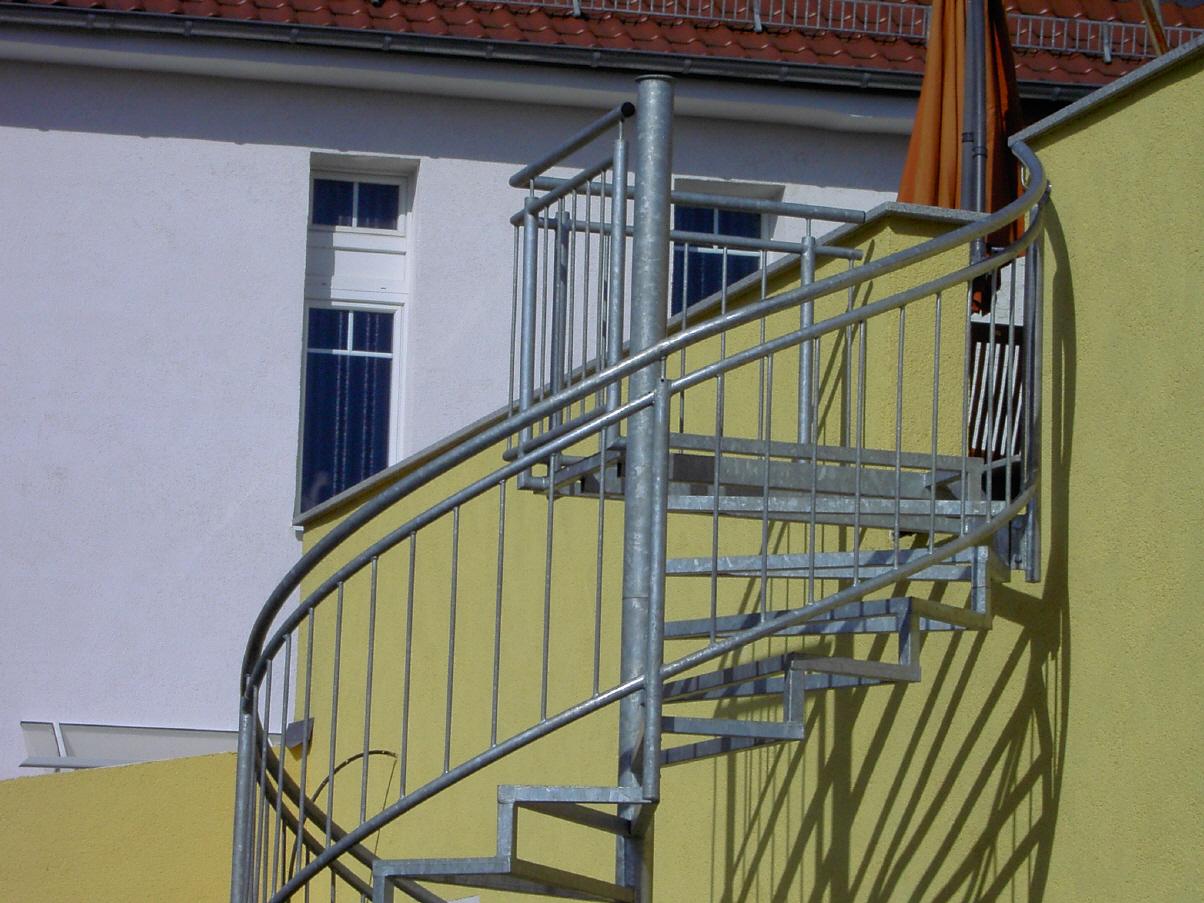 Wendeltreppe aus feuerverzinktem Rundrohr Ø 100 mm.
