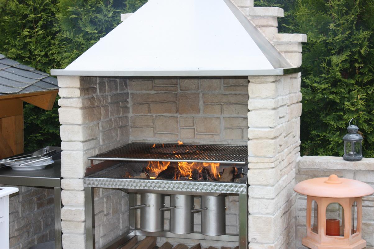 Untergestell aus Quadratrohr 40 x 40 mm Grillwanne aus Edelstahlblech 1,5 mm dick Grillrost aus 12 mm Rundstahlrahmen, Größe 90 x 70 cm Roststreben aus 6 mm Rundstahl