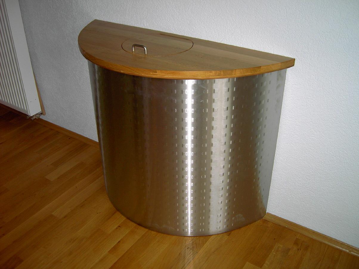Geprägtes Edelstahlblech im Radius 500 mm gerollt mit Winkeleisenverstärkungsrahmen Abdeckung aus Eichenholz