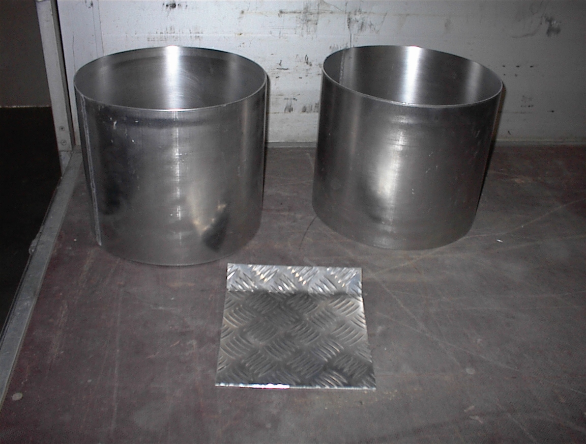 Wurden als Bullaugen in einer Terassentrennwand eingebaut.Material:Gerollte Aluminiumbleche Ø 300 mmLänge 300 mm
