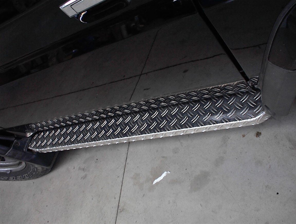 Trittbrett gekantet und gebogen aus Aluminiumduettblech, materialstärke 2,5 mm, gebogene Kanten verschweißt.