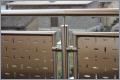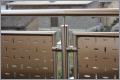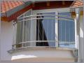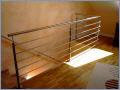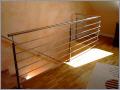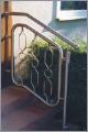 Handlauf, Rahmen und Pfosten aus Rohr. Füllungen aus Rundmaterial, gebogen und verschweißt. Gesamtes Material Edelstahl gebürstet - Korn 240.