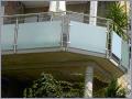 Pfosten und Handlauf aus Rundrohr Ø 42,4 mm Querstrebe und Pfostenverbindungen aus Rundstahl Ø 12 mm Füllungen aus satiniertem VSG-Glas 10 mm Glasbefestigung aus Edelstahl 2-teilig