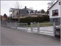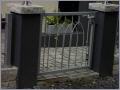 Rahmen aus Quadratrohr 40x40 mm. Pfosten aus Rechteckrohr 60x60 mm. Rahmen und Füllstäbe wurden der Straßenneigung angepasst.