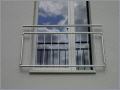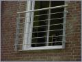 Fesnstergitter aus T 50 Stahl mit 6 waagrechten Füllstäben Ø 12 mm, mit abgesetztem Handlauf aus Edelstahl.